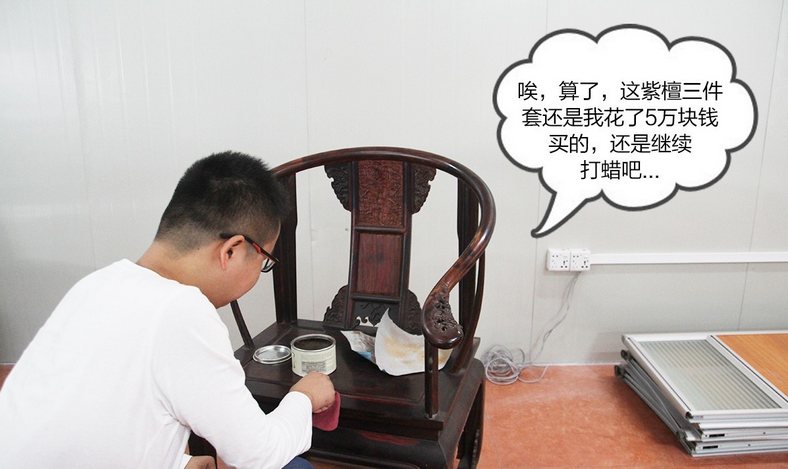 前阵子买了一套圈椅三件套,本想这会得到各大便宜了,这不,想给家具打打蜡,边打边看日久才暴露出来的白补和粘接,那个恨啊,便宜没好货,以后一定不买这种货,看看好货的时候暗下决心,此时边上漂来一句:好货当然不便宜,是超级贵,你买得起几件?一语打醒梦中人……
